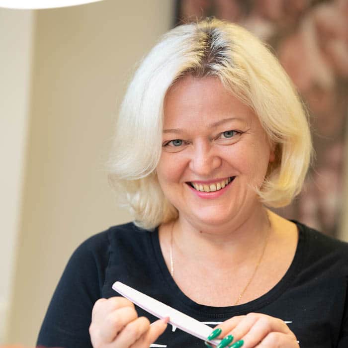 “My passion and love is to do classically elegant and feminine beautiful nails in different styles. I develop myself through carefully selected courses. Over the years I have been successful in several competitions. As a nail technician, the well-being of my nails is also important to me – not just the design, which is why I work carefully and meticulously not only on the appearance of my nails, but also on their condition. Stylish nails and a client’s smile are the key to happiness in my work.”